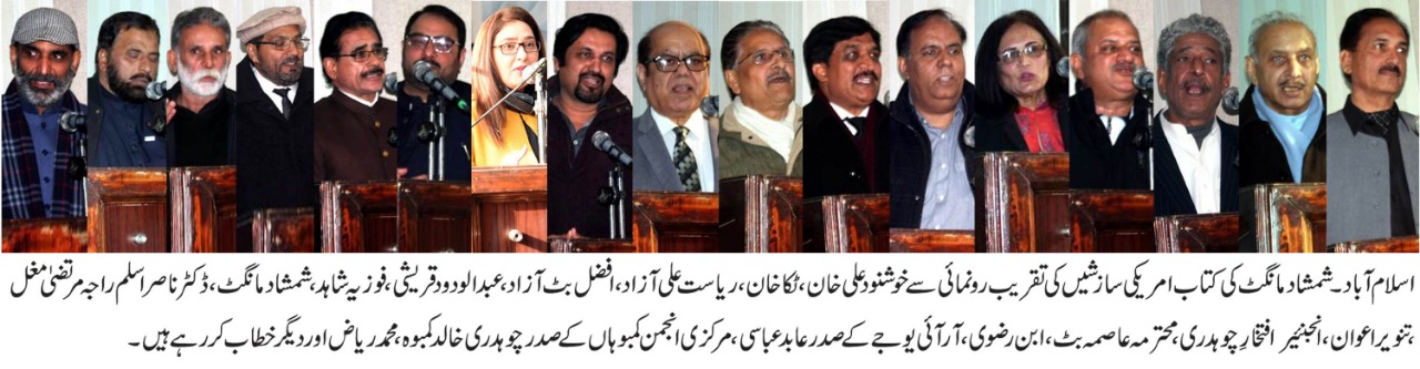 سینئر صحافی شمشادمانگٹ کی تہلکہ خیز کتاب امریکی سازشیں کی تقریب