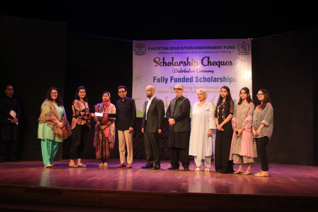 کراچی: پاکستان ایجوکیشن انڈومنٹ فنڈ، وفاقی وزارت تعلیم و پیشہ وارانہ تربیت کی جانب سے کراچی میں تقریب کا انعقاد.کیا گیا. نینشل انسٹیٹیوٹ آف پرفامنگ آرٹس کراچی میں ہونے والی تقریب میں 18یونیورسٹیوں کے 137 طلبا و طالبات میں 48 ملین روپے کےاسکالر شپ چیکس تقسیم کیے گے۔