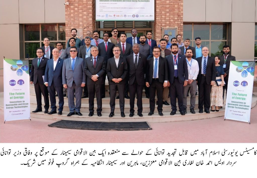 اسلام آباد: جنوب میں پائیدار ترقی کے لیے قائم سائنس اینڈ ٹیکنالوجی کمیشن (کامسیٹس) نے ملکی اور بین الاقوامی شراکت داروں کے تعاون سے ’’توانائی کا مستقبل: قابل تجدید اور ماحول دوست توانائی کی ٹیکنالوجیز میں جدت‘‘ کے عنوان سے ایک بین الاقوامی سیمینار کا انعقاد کیا۔