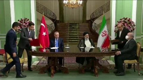 ترک صدر رجب طیب اردوان کی ایرانی صدر ابراہیم رئیسی سے بھی ملاقات ہے اس موقع پر بات چیت کے بعد دونوں ممالک کے درمیان صدور کی موجودگی میں مشترکہ تعاون کی دستاویزات پر دستخط کیے گئے ۔