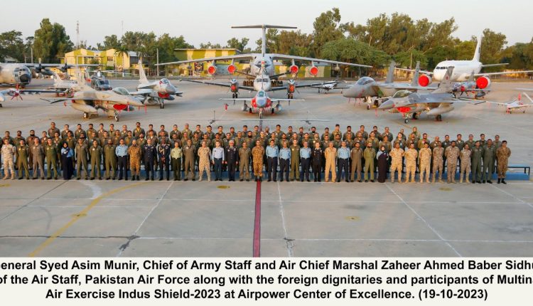 آئی ایس پی آر کے مطابق آرمی چیف جنرل سید عاصم منیر نے پاکستان ائیرفورس کی ائیر بیس کا دورہ کیا اور فضائی مشق انڈس شیلڈ 2023 کا جائزہ لیا.