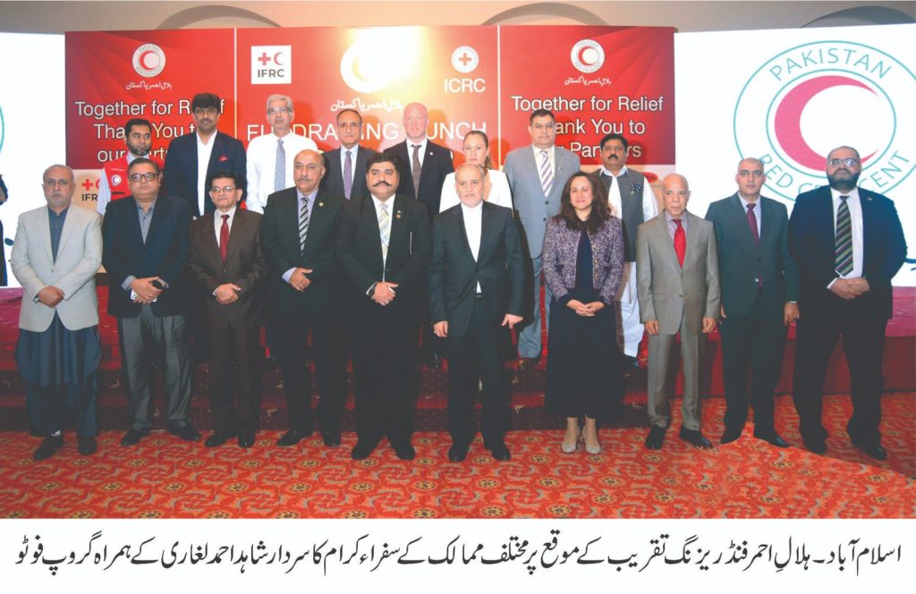 اِن خیالات کا اظہار ہلالِ احمر پاکستان کے چیئرمین سردار شاہد احمد لغاری نے ”فنڈریزنگ لنچ“ کے موقع پر خطاب کرتے ہوئے کیا۔ اِس سے قبل ہلالِ احمر پاکستان کے سیکرٹری جنرل عبیداللہ خان نے ریڈکراس ریڈکریسنٹ موومنٹ کی تاریخ اور ہلالِ احمر پاکستان کی سرگرمیوں اور جاری پروگراموں سے متعلق بتایا.